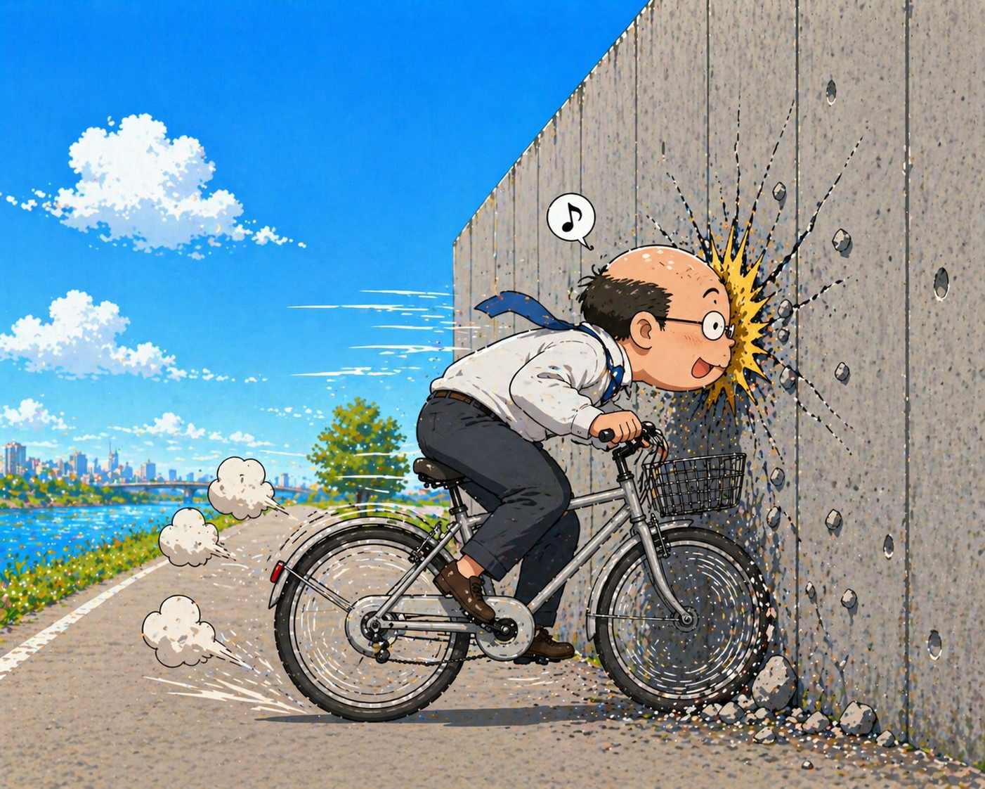 ガンッ。 …ん? いや、気のせいやろ。 ペダル踏む。 ガンガン踏む。 壁? 知らん。 車輪? 空回りしてる? ええやん。回ってるやん。 前に進んでるかどうかなんか、 あとで誰かが教えてくれるやろ。 とりあえず今は、 おも […]